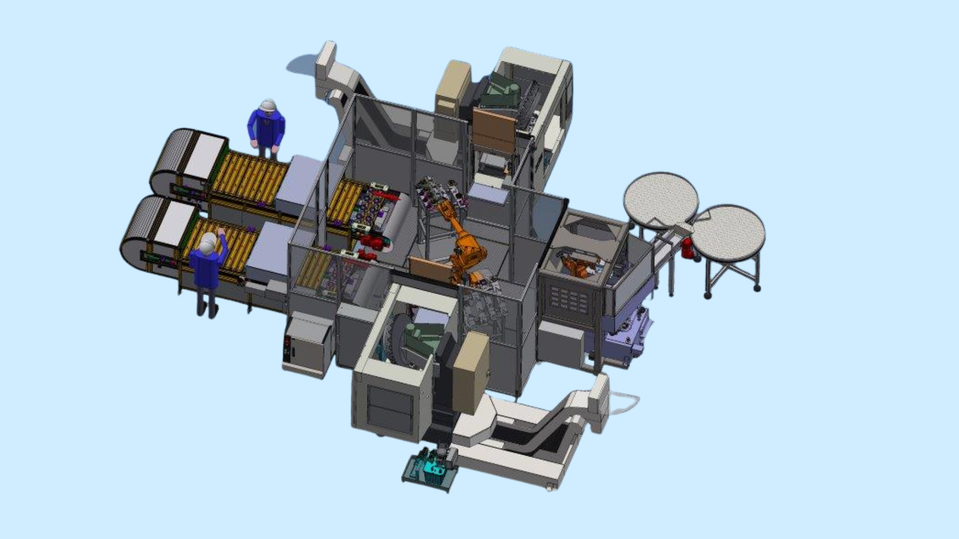 Die portable Automationszelle ermöglicht einen unterbrechungsfreien Betrieb beim Beladen. Kompatibel mit 6-Achs-Robotern, bietet sie Platz für 5 Produktschubladen.